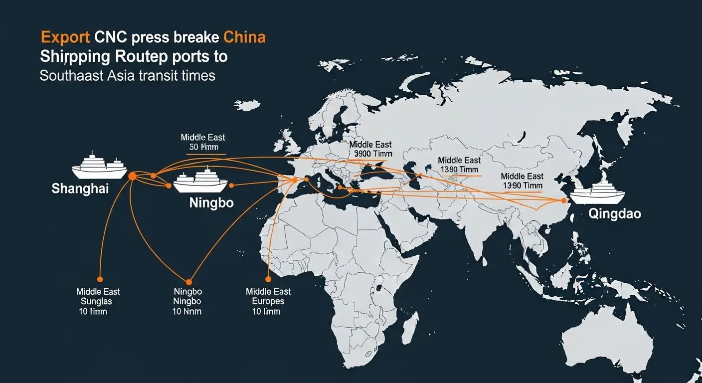 Port selection affects both cost and transit time for an export CNC press brake from China. Three ports handle the majority of heavy machinery exports: