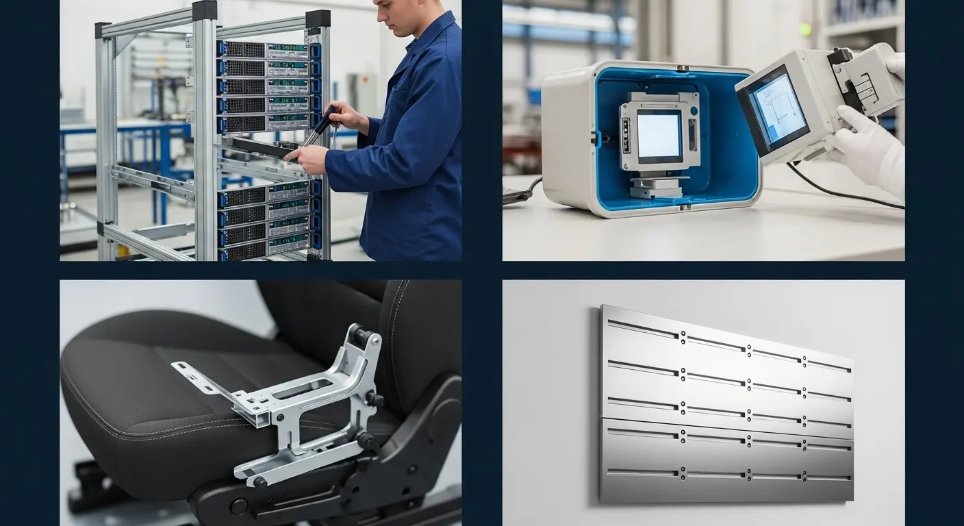 تصنيع الأجهزة الدقيقة. لوحات التحكم, أغلفة أجهزة القياس, وتتضمن حاوية معدات المختبر ملفات متعددة الخطوات مع عدة خطوط انحناء لكل جزء. التموضع متعدد المحاور المتسق هو المسار الوحيد للإنتاج لهذه التطبيقات بحجم تجاري.