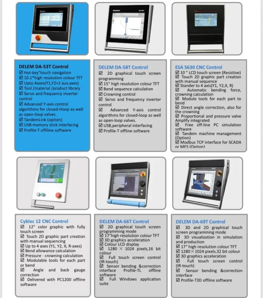 تقدم JS RAGOS خيارات لوحدات التحكم بما في ذلك ESA على أنواع متعددة من الأجهزة, وخط فرامل الضغط المزدوج يدعم التطبيقات التي تتطلب معالجة أجزاء طويلة جدا أو تشغيل مرن بجهازين. لورش العمل التي تقيم الموردين, هذا النوع من المرونة في التكوين غالبا ما يكون أكثر فائدة من اختيار الجهاز بناء على المواصفات الرئيسية فقط.