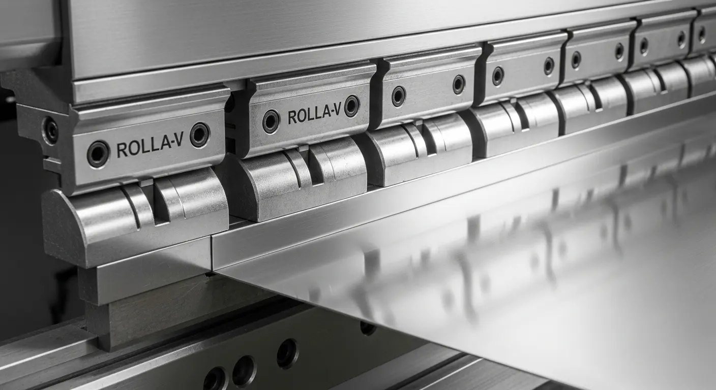 رولا-في (نرد متدحرج) — قالب رولا-V يستبدل فتحة V الثابتة بكتف قالب دوار, لذا تدحرج ورقة الفولاذ المقاوم للصدأ عبر نقطة تلامس متحركة بدلا من السحب عبر حافة ثابتة. والنتيجة هي تقليل كبير في علامات السطح — وهو أمر ضروري لفرش رقم 4, بكالوريوس, وتشطيبات الستانلس لس بالمرآة.